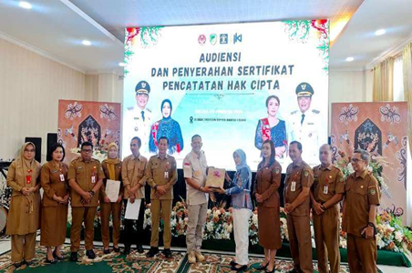 MUARA TEWEH – Kepala Bidang Pelayanan Kekayaan Intelektual Kanwil Kemenkumham Kalimantan Tengah, Budi Haryono, menekankan pentingnya pelindungan Kekayaan Intelektual (KI) sebagai instrumen vital dalam mendongkrak nilai ekonomi produk lokal. Hal ini disampaikannya saat menyerahkan Sertifikat Hak Cipta Desain Batik di Aula Rumah Jabatan Bupati Barito Utara, Selasa (3/2/2026).