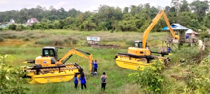 Percepat Normalisasi Waduk, Pemkab Barito Utara Uji Coba Dua Unit Excavator Amfibi di Dam Trahean