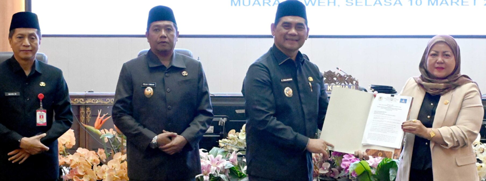Setelah seluruh pandangan fraksi diterima, Plt. Sekretaris DPRD membacakan Rancangan Berita Acara Persetujuan Bersama antara Kepala Daerah dan DPRD. Agenda kemudian berlanjut pada penandatanganan Berita Acara tersebut yang menandai kesepakatan formal antara legislatif dan eksekutif. Prosesi ini dirangkaikan dengan penyerahan dokumen Pendapat Akhir Fraksi serta Sambutan Bupati Barito Utara terkait urgensi RPJMD 2025–2029 bagi kesejahteraan masyarakat.