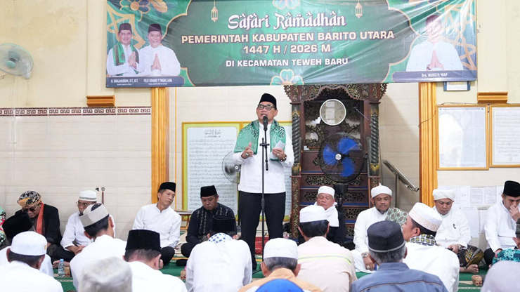 Muara Teweh – Suasana religius yang penuh kehangatan menyelimuti Masjid Babussalam, Kelurahan Jambu, pada Jumat (13/3/2026) saat Penjabat Bupati Barito Utara, Shalahuddin, hadir menyapa warga. Kegiatan ini merupakan bagian dari rangkaian Safari Ramadhan yang bertujuan untuk menjalin komunikasi langsung dengan masyarakat. Kehadiran pimpinan daerah di Bumi Iya Mulik Bengkang Turan tersebut disambut antusias oleh jamaah yang memenuhi masjid sejak sore hari.